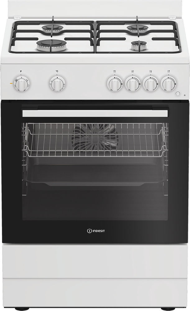 Cechy wolnostojącej kuchenki 60x60 Indesit: dwa palniki. Kolor biały. Zasilanie gazowo-elektryczne. Wielofunkcyjna metoda gotowania. 60 cm szerokości.