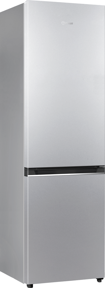 Cechy wolnostojącej lodówko-zamrażarki Indesit: kolor srebrny. Szklane półki zapewniają wytrzymałość i elegancję.